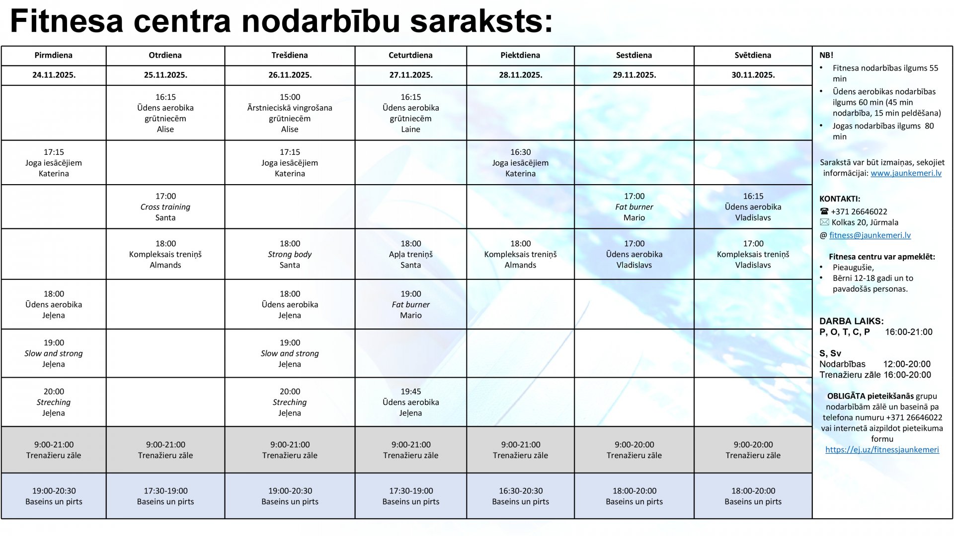 С 01.10.2022 обязательна предварительная запись (не менее чем за 2 часа до начала занятия)! Вы можете это сделать, заполнив онлайн-заявку или позвонив и зарегистрировав свое участие по телефону +371 26646022 (ежедневно с 12:00 до 20:00).