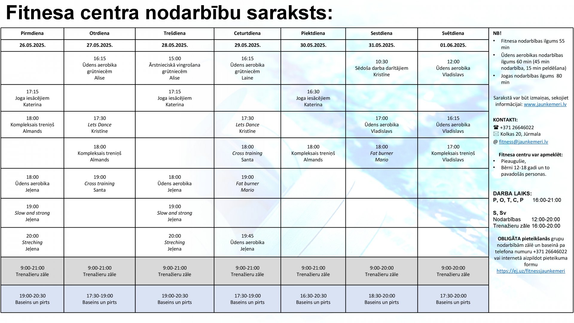 Uzmanību! Lai apmeklētu Fitnesa centra nodarbības, lūdzam aizpildīt pieteikšanās anketu internetā: https://ej.uz/fitnessjaunkemeri
