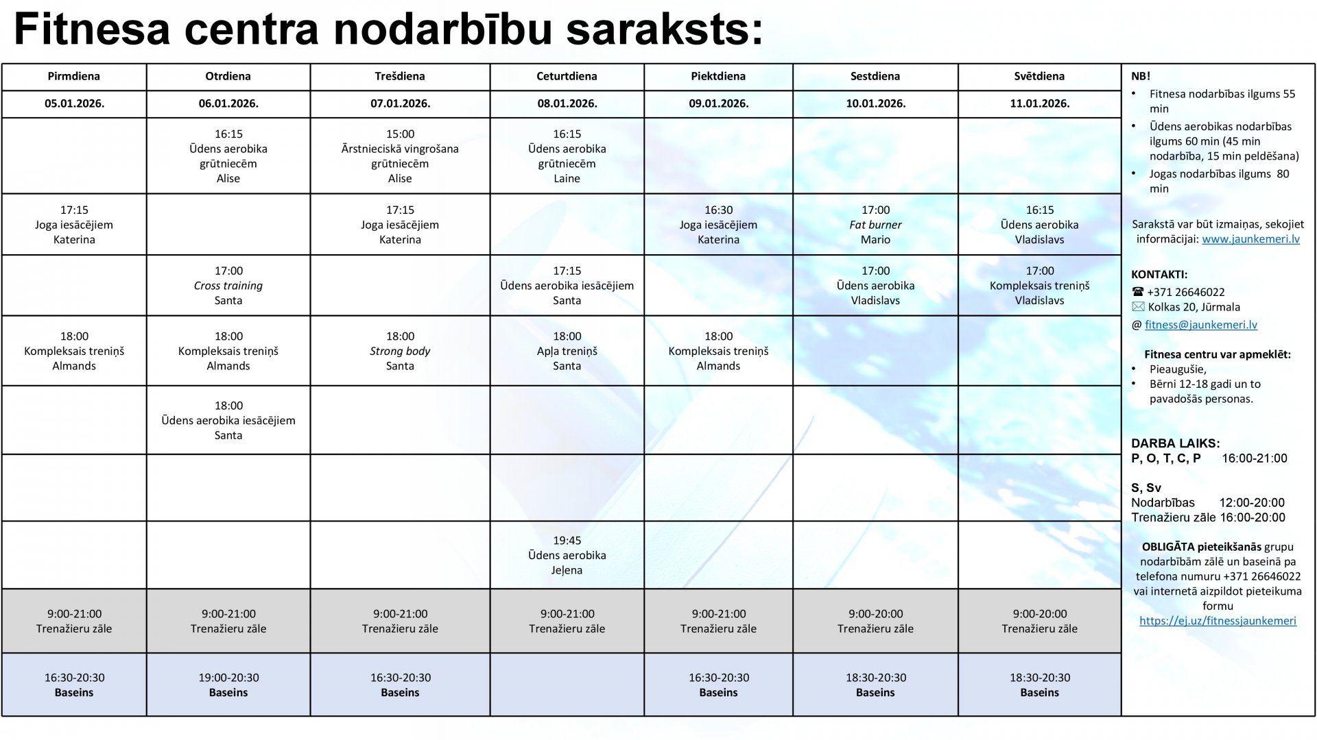 С 01.10.2022 обязательна предварительная запись (не менее чем за 2 часа до начала занятия)! Вы можете это сделать, заполнив онлайн-заявку или позвонив и зарегистрировав свое участие по телефону +371 26646022 (ежедневно с 12:00 до 20:00).