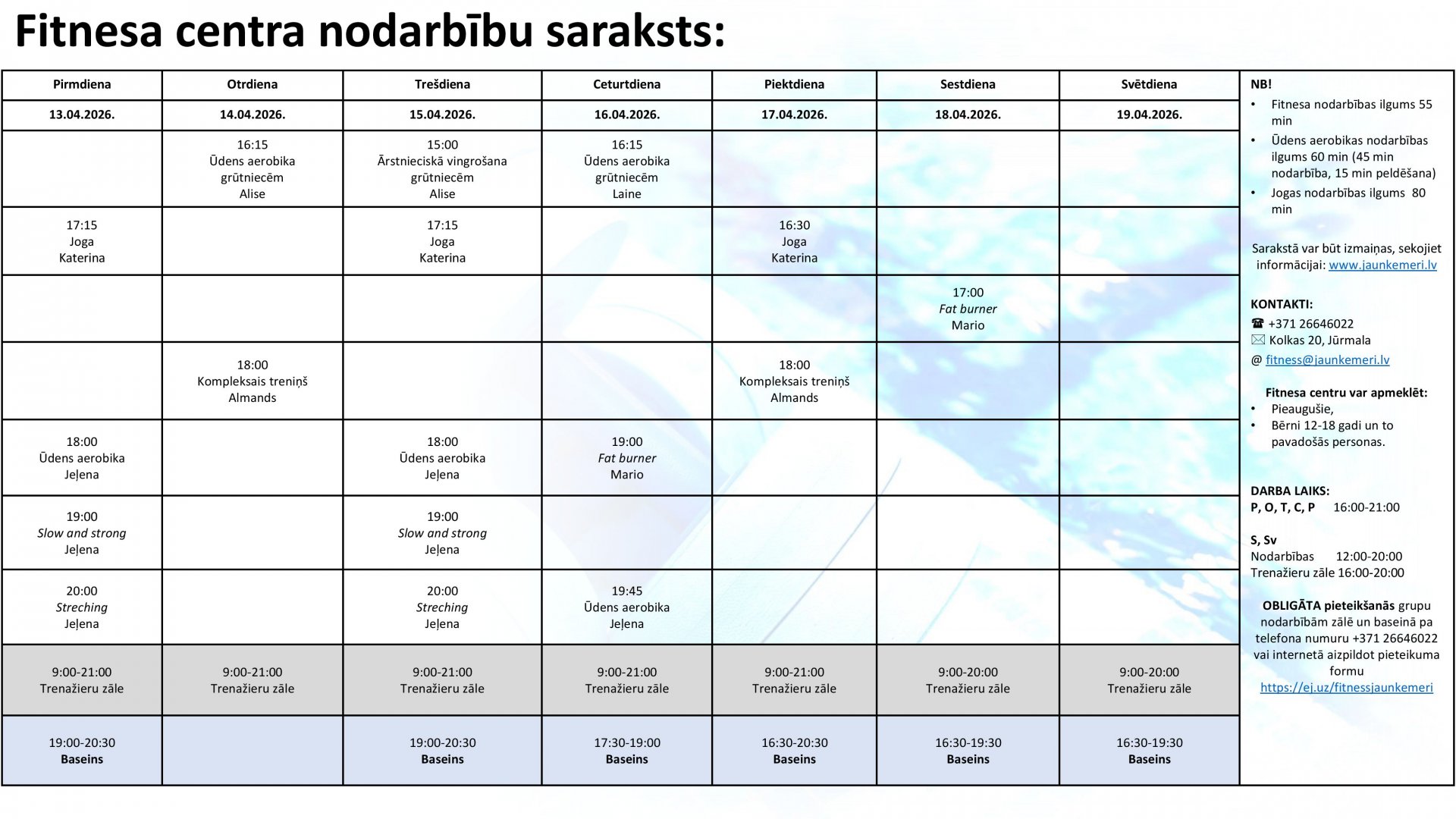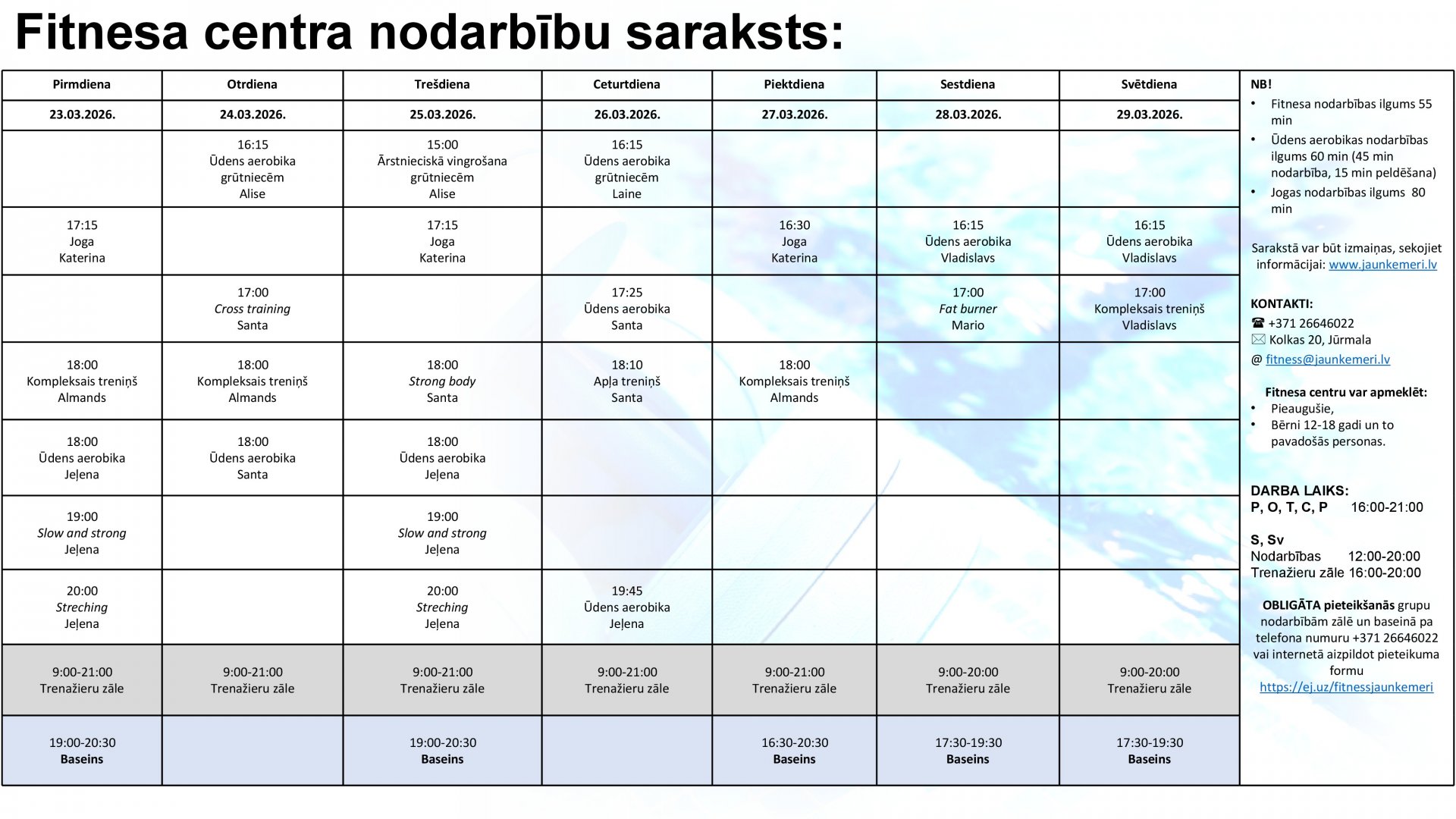 С 01.10.2022 обязательна предварительная запись (не менее чем за 2 часа до начала занятия)! Вы можете это сделать, заполнив онлайн-заявку или позвонив и зарегистрировав свое участие по телефону +371 26646022 (ежедневно с 12:00 до 20:00).