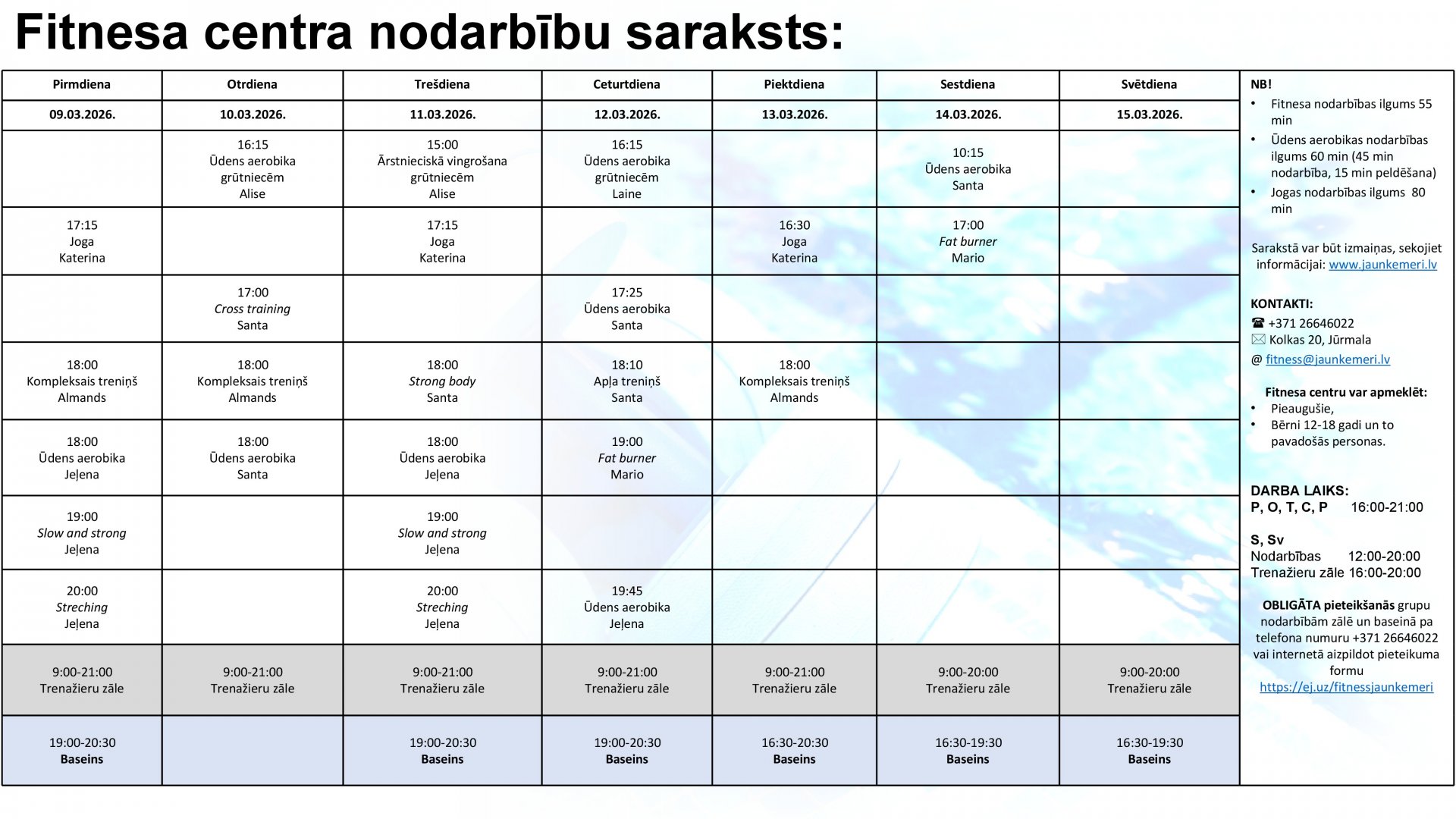 С 01.10.2022 обязательна предварительная запись (не менее чем за 2 часа до начала занятия)! Вы можете это сделать, заполнив онлайн-заявку или позвонив и зарегистрировав свое участие по телефону +371 26646022 (ежедневно с 12:00 до 20:00).