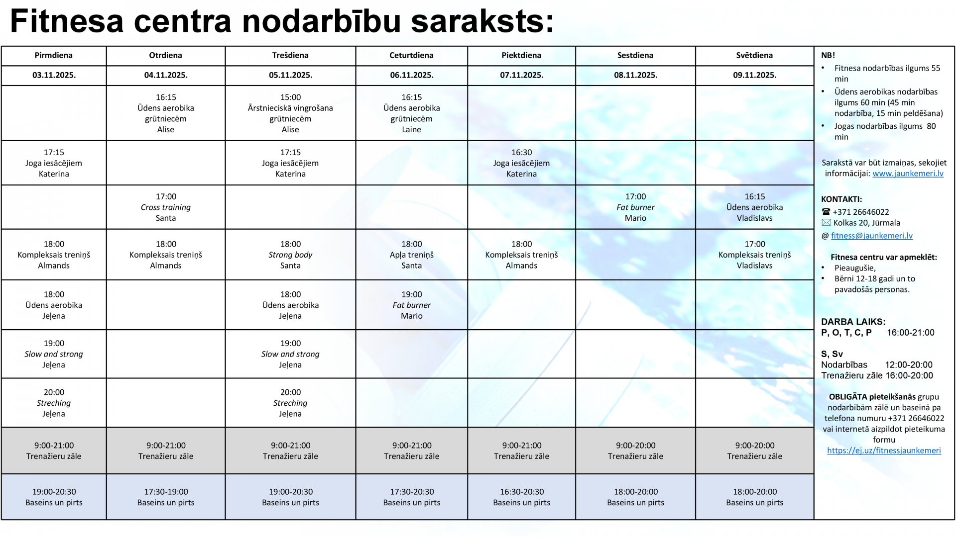 Uzmanību! Lai apmeklētu Fitnesa centra nodarbības, lūdzam aizpildīt pieteikšanās anketu internetā: https://ej.uz/fitnessjaunkemeri