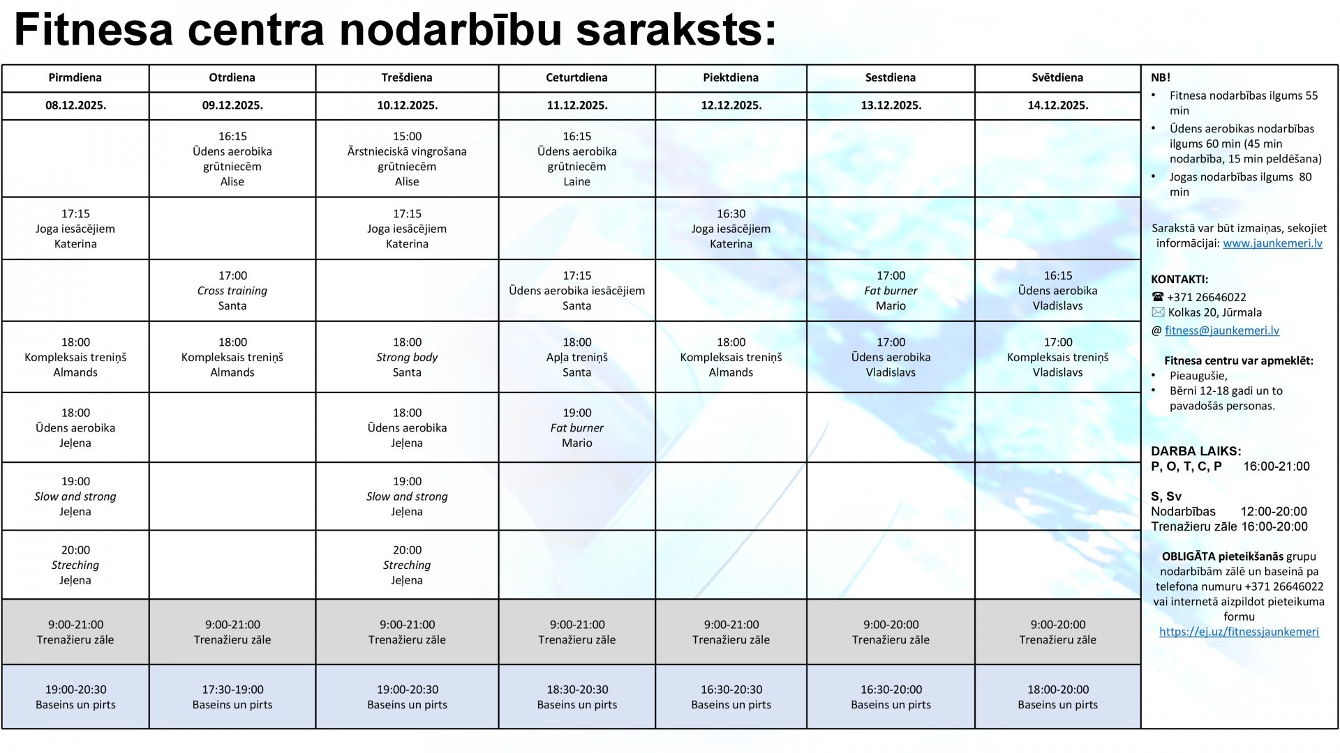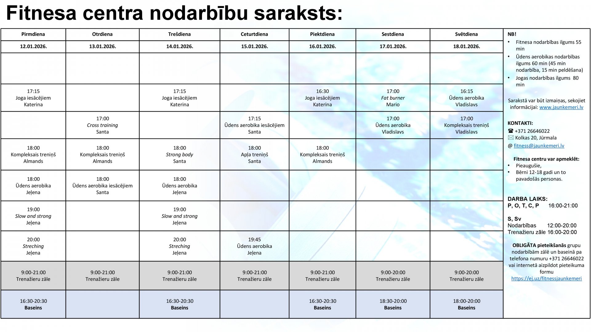 С 01.10.2022 обязательна предварительная запись (не менее чем за 2 часа до начала занятия)! Вы можете это сделать, заполнив онлайн-заявку или позвонив и зарегистрировав свое участие по телефону +371 26646022 (ежедневно с 12:00 до 20:00).